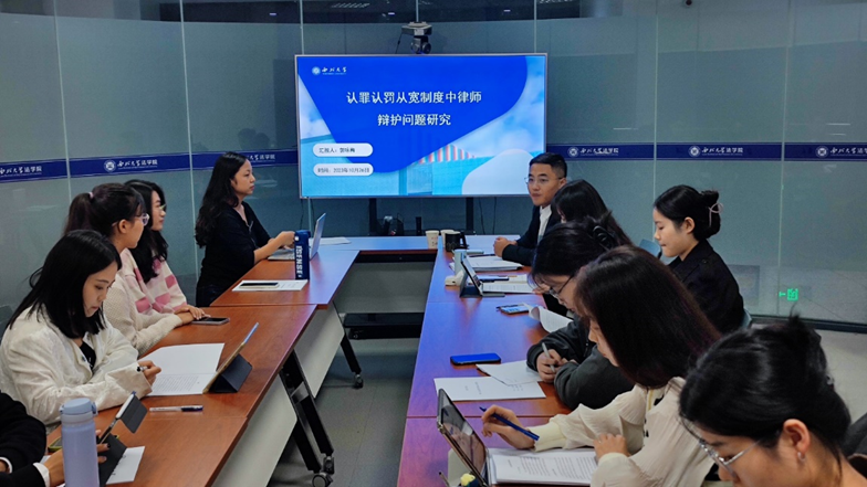 1027日晚,学术活动月研究生汇报活动的第四场于西学楼北0906会议室举办,民商法学教研部刘桢老师担任点评嘉宾。八位同学所汇报的内容涉民法基础理论、著作权、商标权等,刘桢老师秉承审慎的学术态度,对同学们的汇报作出专业点评,同时对于研究生在论文写作过程中的具体方法和学术规范作出了指导,参与汇报的同学通过与刘桢老师的深入交流和学习,在学术素养提升方面收获颇丰