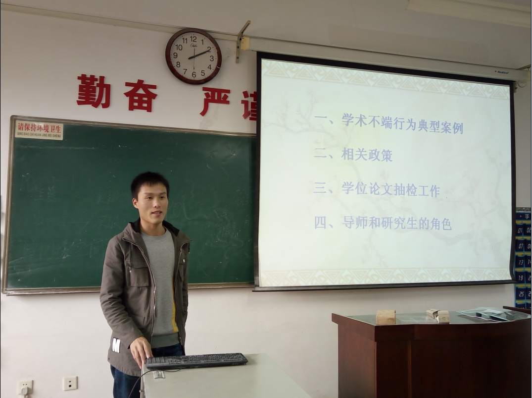 研究生院王老师的报告分为四个部分:一、学术不端行为典型案例;二、相关政策;三、学位论文抽检工作;四、导师和研究生的角色。通过王老师的讲座,师生们明晰了学校对于学风的基本要求,激励着大家努力奋进,诚信做学问。