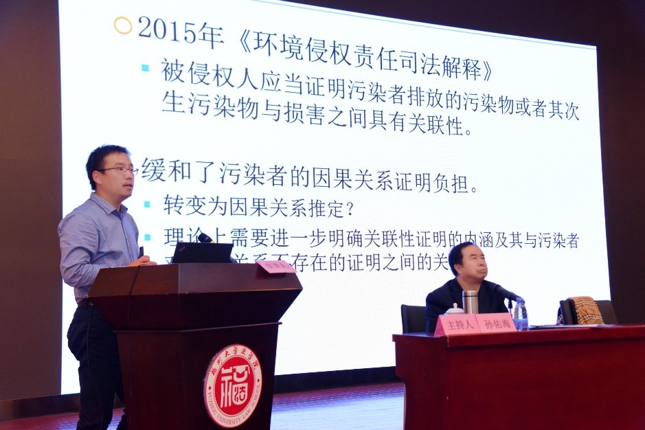 开幕式之后的大会主旨报告环节中国法学会副会长、中国法学会环境资源法学法学研究会会长、清华大学双聘教授吕忠梅,中国法学会环境资源法学研究会副会长、浙江工商大学242net必赢特聘教授徐祥民,中国法学会环境资源法学研究会常务理事、福州大学242net必赢教授邹雄也分别以“习近平总书记关于生态文明法治的重要论述研究”“系统、整体、共生——习近平总书记关于生态文明法治重要论述的环境观基础探析”“生态法治需以环境权为环境法学理论基础”发表了主旨报告。王社坤教授也应邀发表了题为“中日环境健康损害因果关系证明比较研究”的主旨报告。