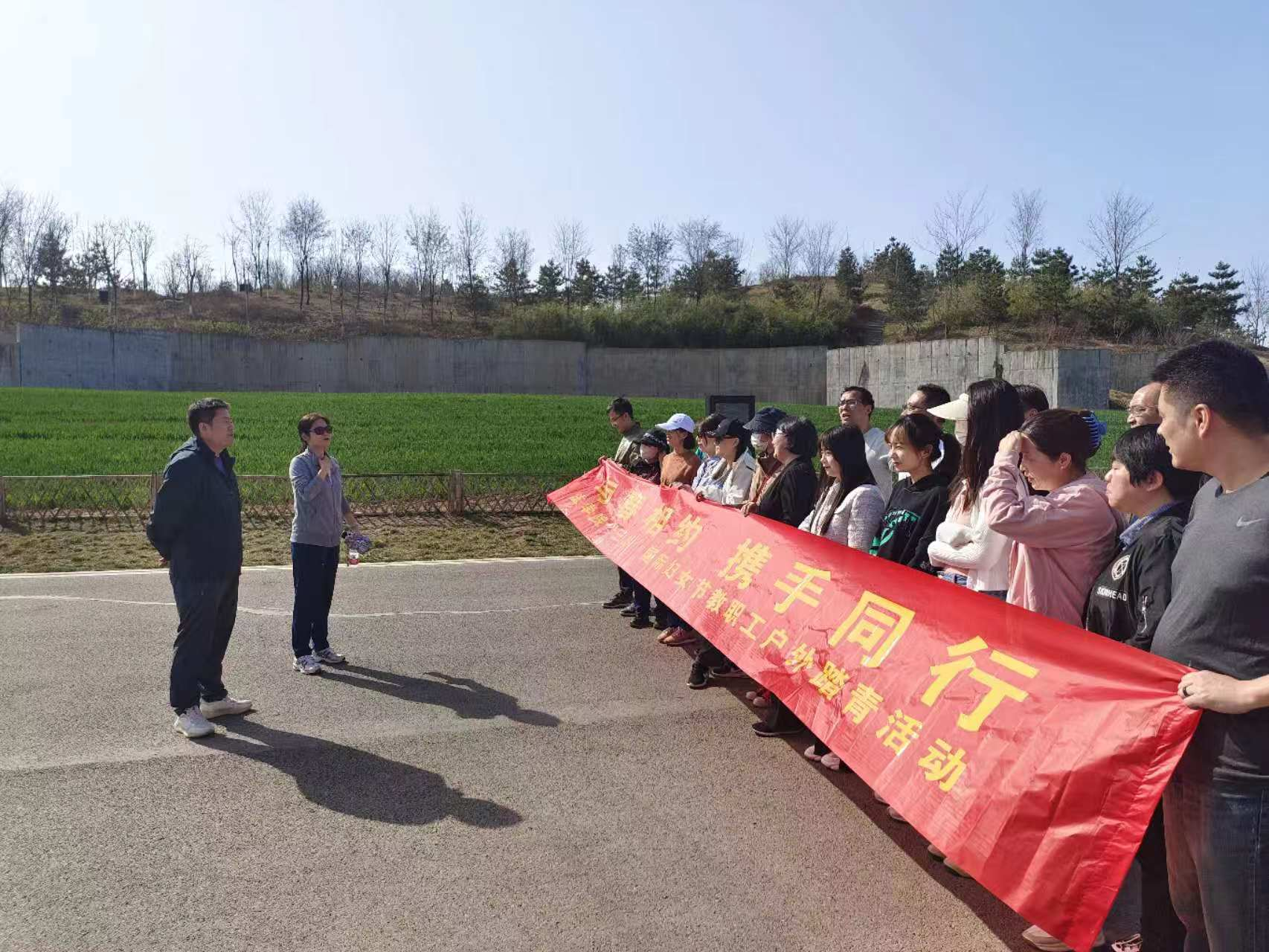 天气晴朗,气温微热,教职工们有的已经脱下了外套,不放过任何一个与春天亲密接触的机会,每个人脸上都洋溢着甜美灿烂的笑容仿佛在追赶春的脚步