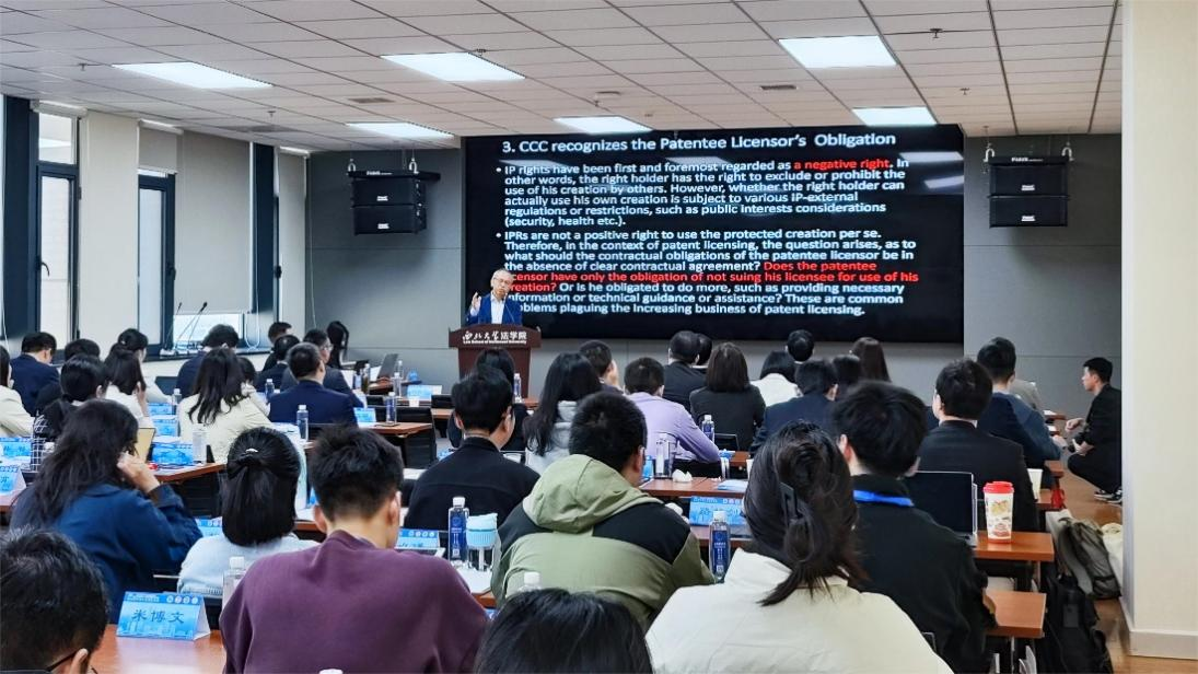 新加坡管理大学李光前法律教授刘孔中教授为培训班作了题为《中国知识产权之路——从制度追随者到赛局改变者》的主旨报告。刘孔中教授从国际比较的视角介绍了当前中国知识产权的处境,并对青年学者选题提出了宝贵的意见。同时从知识产权的数量增长与质量提升、公平竞争与公共资助政策、国际合作与交流、知识产权制度的创新等方面和与会的学者进行了交流,并给出了自己的思考和建议,并认为我国应在知识产权制度领域做出新探索。