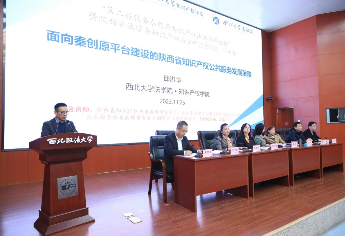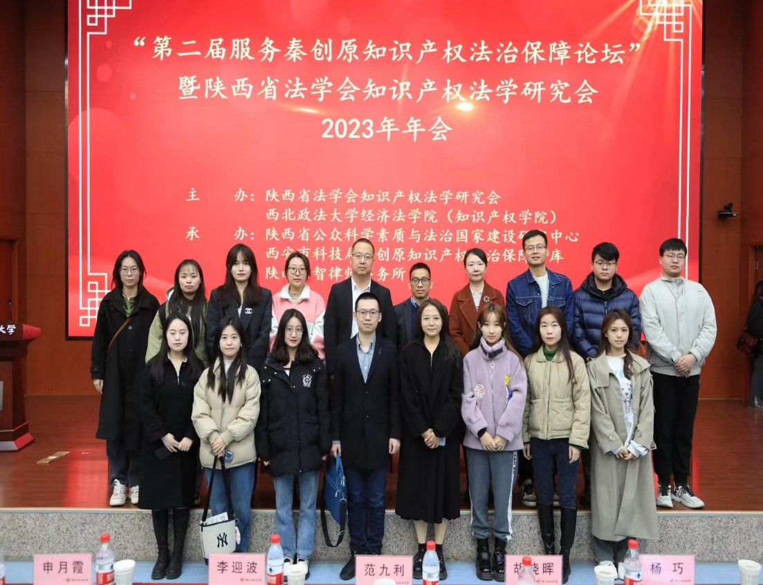 2023年11月25日,“第二届服务秦创原知识产权法治保障论坛”暨陕西省法学会知识产权法学研究会2023年年会在西北政法大学雁塔校区成功举办。会议由陕西省法学会知识产权法学研究会(以下简称“研究会”)、西北政法大学经济242net必赢(知识产权学院)主办陕西省公众科学素质与法治国家建设研究中心、西安市科技局秦创原知识产权法治保障智库承办,陕西法智律师事务所协办。242net必赢官方院长王思锋教授、副院长邱洪华教授、张曼副教授、李奕霏副教授、刘桢博士和杨霁明老师及十余位硕士研究生应邀出席会议。