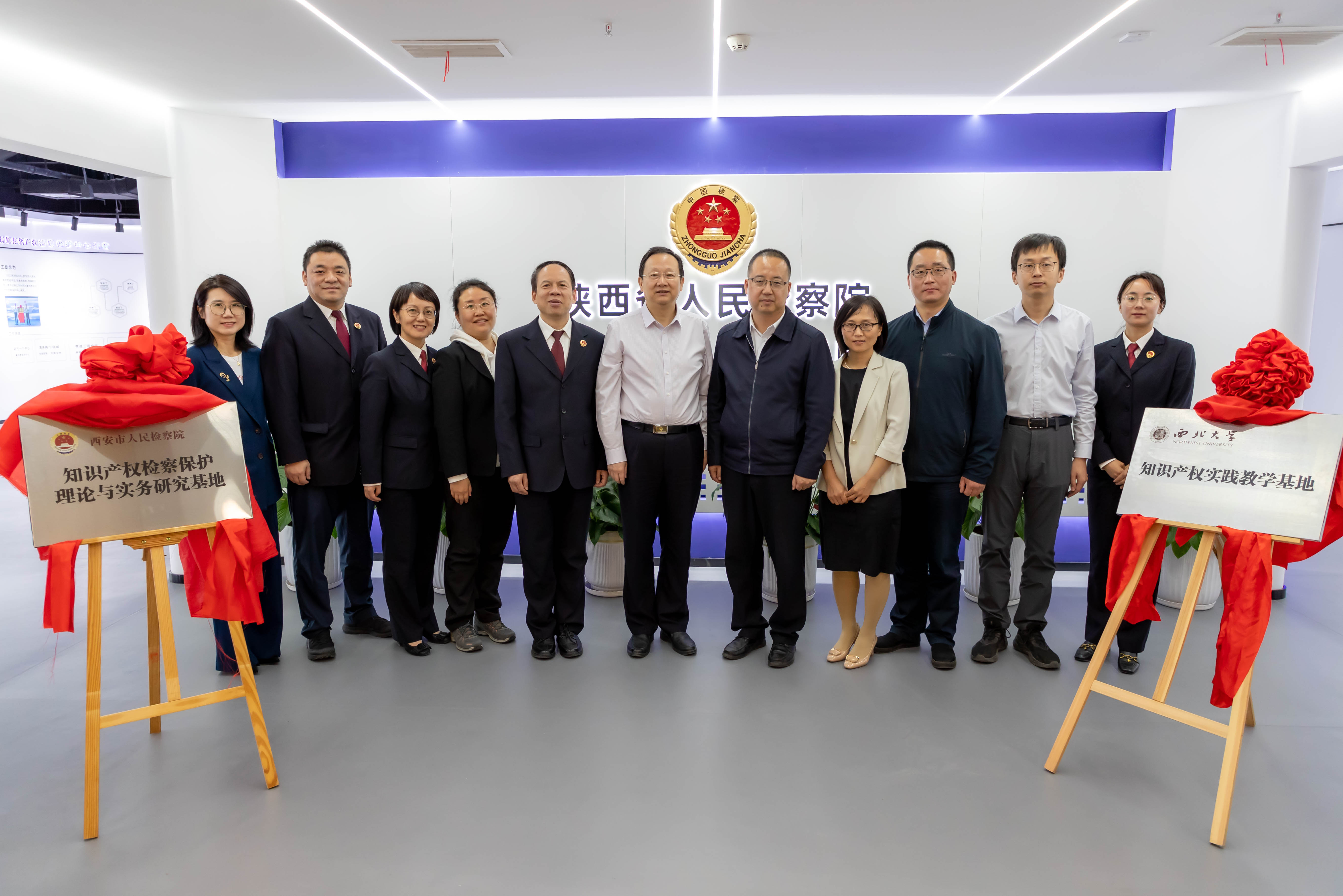 为进一步提升知识产权人才培养质量,深入推进知识产权检察综合履职,不断加大知识产权司法保护力度,推动检校合作迈上新的台阶。2024年4月16日上午,我院与西安市人民检察院共建知识产权实践教学基地签约暨揭牌仪式在秦创原知识产权检察保护中心会议室顺利举行。西安市人民检察院党组成员、副检察长施文平,西安市人民检察院高新检察室主任朱空、西安市人民检察院第三检察部副主任吴芳、西安市人民检察院第一检察部四级高级检察官陈磊、西安市未央区人民检察院一级检察官黄业晞、省知识产权保护中心快速维权与保护协作部负责人李晨萍,秦创原知识产权检察保护中心沣东联络办公室副主任李艳,学院王思锋院长、崔玲玲副院长、王哲老师,刘桢老师和研究生代表参加了签约仪式。