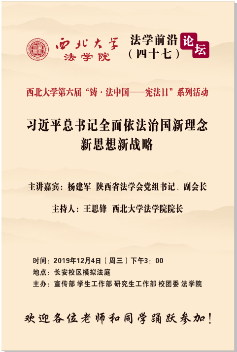 讲座通知∣杨建军: 习近平总书记全面依法治国新理念新思想新战略