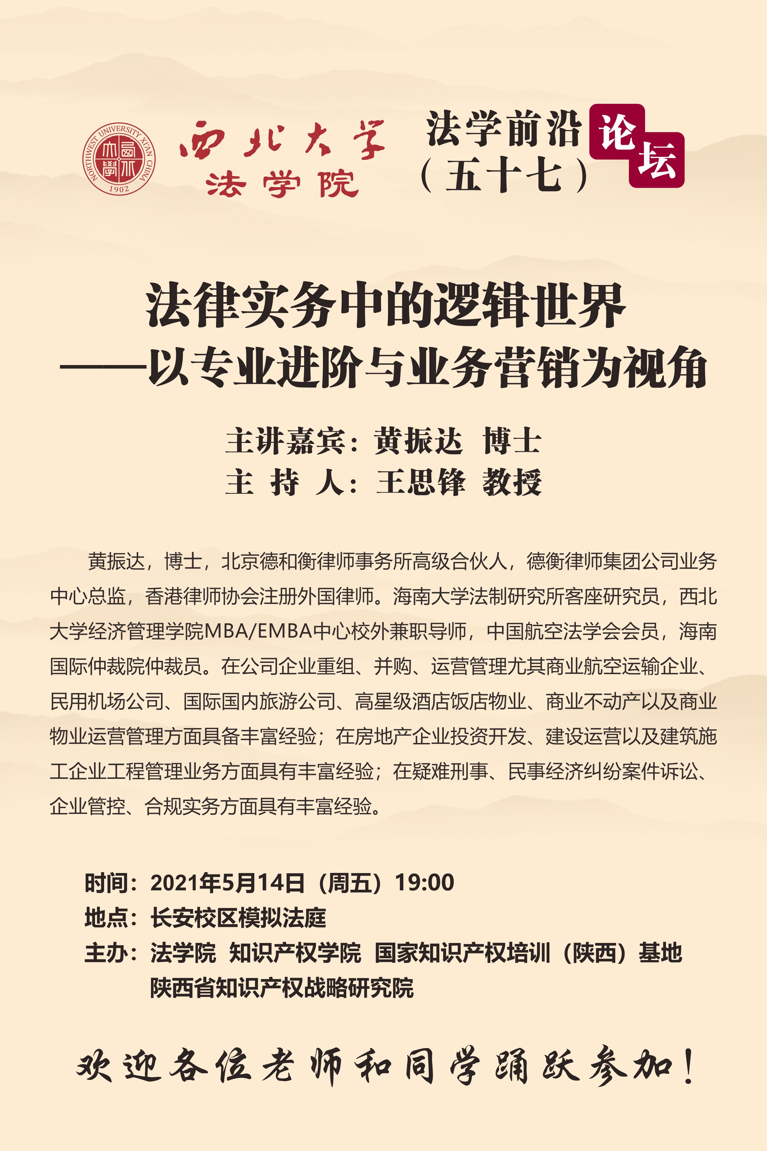 法学前沿论坛 |黄振达:法律事务中的逻辑世界-以专业进阶与业务营销为视角