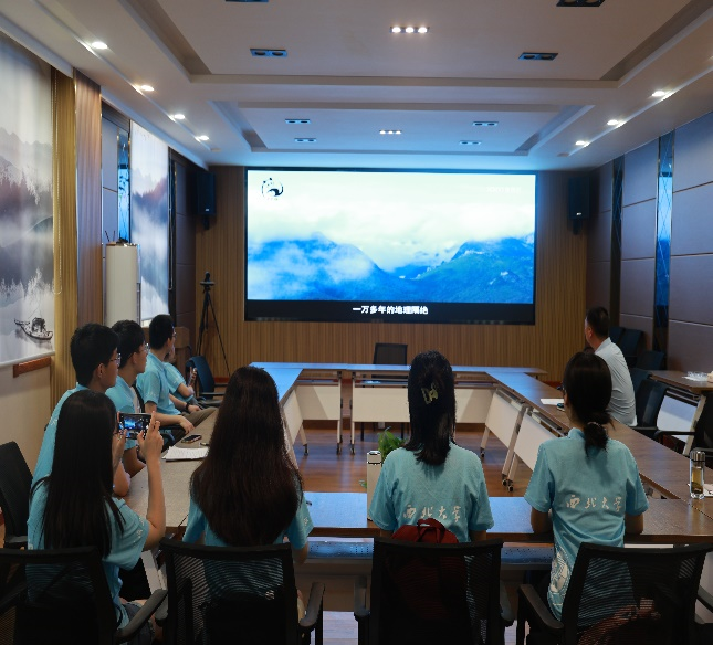 (调研团队一行观看大熊猫国家公园佛坪管理局形象宣传片)