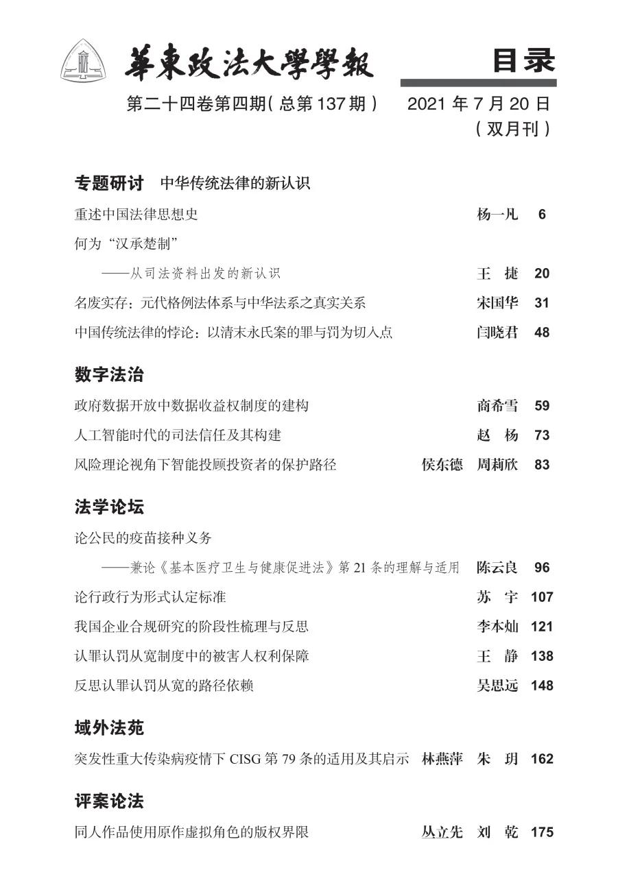 我院学部委员工作室首席专家杨一凡教授论文在《华东政法大学学报》2021年第4期刊发