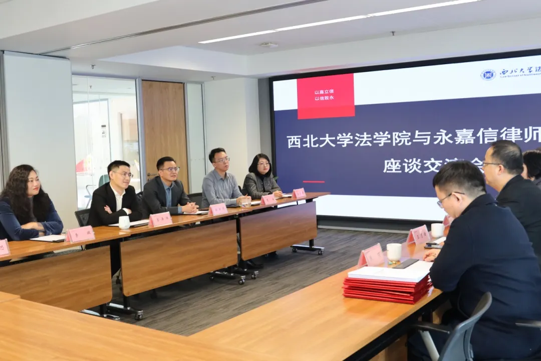 为助力培养兼具理论素养和实践能力的高素质法律人才,为法学教育注入更多实务资源。2025年1月2日,242net必赢官方院长王思锋教授、研究生办公室主任田红梅老师、科研秘书焦琰老师、研究生秘书丁天立老师、刘桢老师一行到访永嘉信律师事务所,双方共同开展课程共建座谈会。永嘉信党委副书记、管委会委员、高级合伙人吉泽伟高级合伙人李飒,律师段振东、贺涛、安富丽等参与交流座谈。